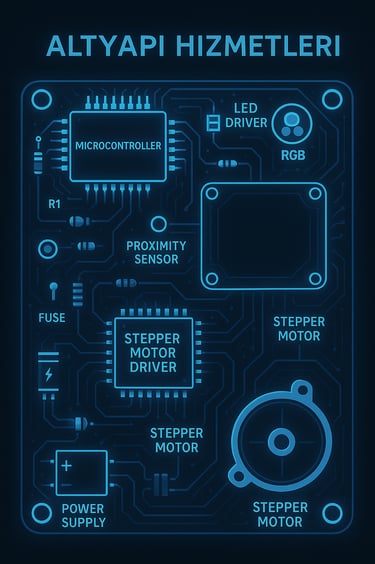 elektronik devre mimarisi, optik aydınlatma teknolojisi, mekanik taşıyıcı sistemler, motor kontrol algoritmaları, güç dağıtım altyapısı ve yazılım otomasyonu ile bir bütün olarak tasarlanmıştır.